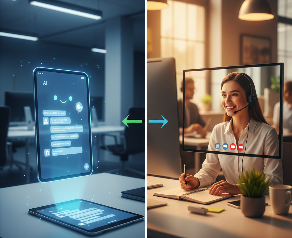 La clave del éxito este año no reside en automatizarlo todo, sino en dominar el «Hand-off» (el traspaso): saber exactamente en qué segundo el bot debe dar un paso atrás y dejar que un humano tome las riendas. Aquí tienes la guía estratégica para equilibrar la eficiencia de la máquina con el alma de tu empresa.